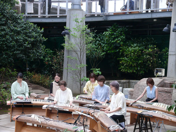 小雨が降る中、EGGの会場はしっとりと素敵な箏の音色に包まれました。前半は北里綾さん作曲の久遠、日本古謡のさくらさくら、後半のプログラムは高校箏曲部を題材として書かれた漫画「この指止まれ!」の中で演奏される曲目で、