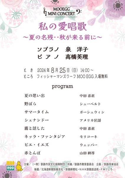 8月25日(日)午後2時より「MOO EGGミニコンサート」を開催いたします。
