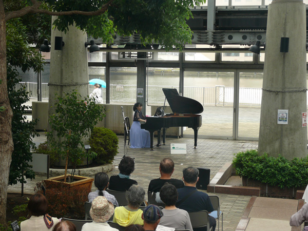 あいにく雨模様のお天気でしたが、高橋英理さんによるピアノ演奏で、歌声も聞こえる楽しいコンサートとなりました。
