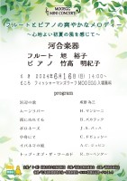 6月16日(日)午後2時より「MOO EGGミニコンサート」を開催いたします。今回は「フルートとピアノの爽やかなメロディー 」~心地よい初夏の風を感じて~と題しまして、バッハの小品からカーペンターズまで幅広い...