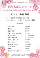 7月28日(日)MOOEGGミニコンサート 昭和名曲コンサート「よみがえる思い出をくちずさみながら」が開催されました。あいにく雨模様のお天気でしたが、高橋英理さんによるピアノ演奏で、歌声も聞こえる楽しいコン...